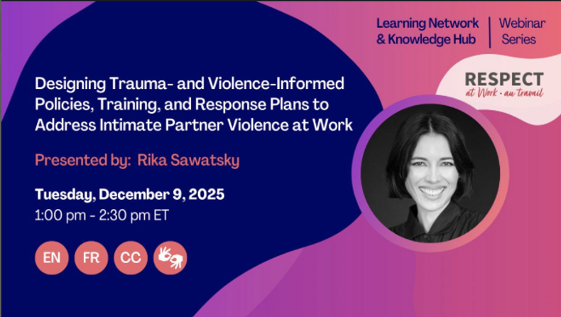 Grounded in a real-life arbitration case, this webinar invites participants to examine how a trauma- and violence-informed (TVI) lens might have changed an employer’s response to an employee experiencing intimate partner violence. The webinar explores what a TVI analysis would have revealed about the survivor’s needs and barriers to participation in the accommodation process. Understanding these dynamics can also further help service providers anticipate potential barriers and more effectively support survivors in navigating workplace responses. Building on these insights, the session will “reverse-engineer” the employer’s legally required workplace violence program to identify policy and procedural measures that could have recognized risks and warning signs of IPV earlier, reduced harm, and strengthened support for survivors.